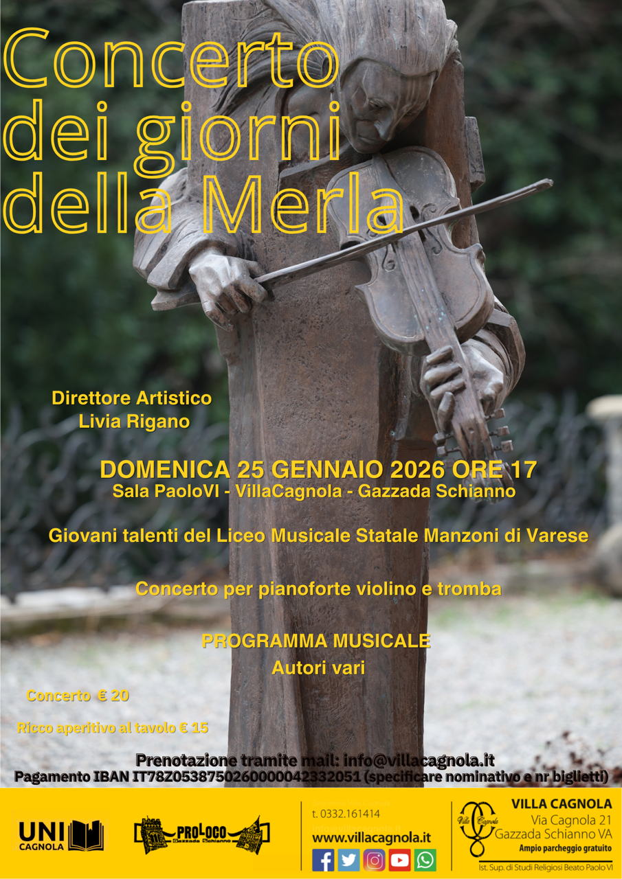 Le prenotazioni via email al concerto e all’aperitivo con l’acquisto dei biglietti con bonifico sono indispensabili per garantire il posto in Sala Paolo VI dove si svolgerà il concerto e in sala ristorante per l’aperitivo.